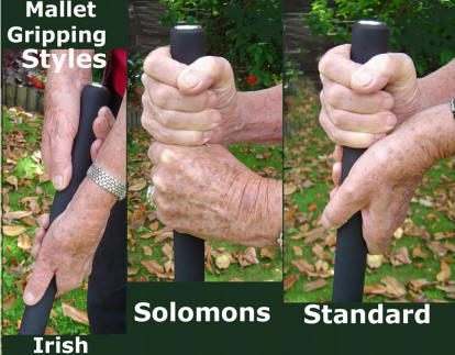 He said I need a 3 pound mallet !Ah huh... This is a carry-over from last century.. and before when most mallets had wooden handles that were glued in. The mallets were weighed as a complete item... Handle and head all together. These days we tend to measure the weight of the head. 1kg=2lb 3 (and a bit) ounces. The head is the bit that does the work. (Hammer and nail) Balls weigh one pound (16oz) each.. 2 balls weigh 2 pounds Handles don't really weigh very much these days. Horus heads weigh under 2lbs, CarbonXtremes (N)ormal = 1kg 2lb3oz, BlackBirds Rainbows (N)ormal = 1kg 2lb3oz For G.C. go lighter (Horus or other "Light") EG. Rainbow (Light) CarbonX (Light) For A.C. go to 1kg (2lb3oz) ~whaterver rocks your boat. What does Mike play with? AC & GC, 12.5" (310mm) 0.950kg. (just over 2lbs) Most popular? CarbonXtreme 280, 1kg. (2lbs 3 1/2 oz) with a .910 (36") TaperedOvalGrip & a Mushroom -------------------------------------------------------- |
